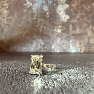 I designed the ring to add her grandmothers two baguette diamonds from an inherited piece to sit either side of the main stone, we settled on a 3.71 carat Emerald Cut Diamond, this addition of history to the specially engineered, geometric piece brought a really lovely personal touch with meaning.