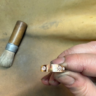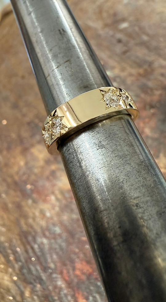 Hand Forged Wedding Band with Sentimental Old Cut Diamonds and family Gold