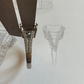 So making commenced, quite an exacting proceedure needing a little engineering to make it work in several ways, to fit the finger, getting the right curvature and to make the bands sit beautifully next to the engagement ring.