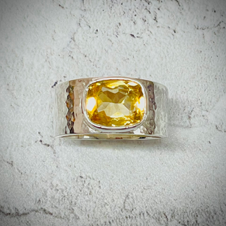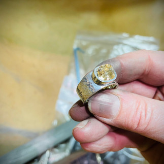 Shame to waste a very good Citrine so I made a tapered planished Silver band and set it in to make a rather fetching dress ring.
