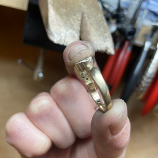 We went through a few ideas and settled upon a design to use the customers gold and 11 wonderful old cut diamonds to be mounted into a ring.